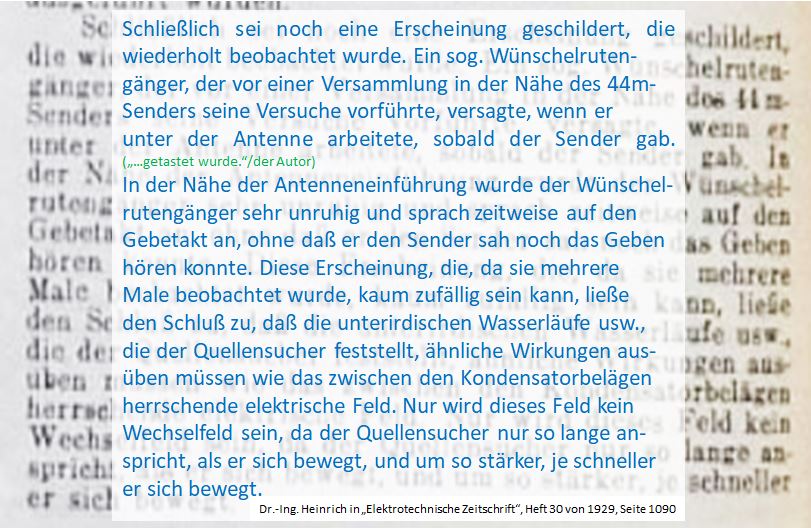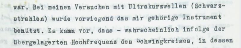 Im Umfeld Heinrichs zu Untersuchungen zur Beeinflussung des menschlichen Organismus durch KW-Hochfrequenz entstand diese von ihm kommunizierte kuriose Beobachtung, die Heinrich im Laboratorium erlebt und in der "Elektrotechnischen Zeitschrift" 1929 kommuniziert hat. Wobei...