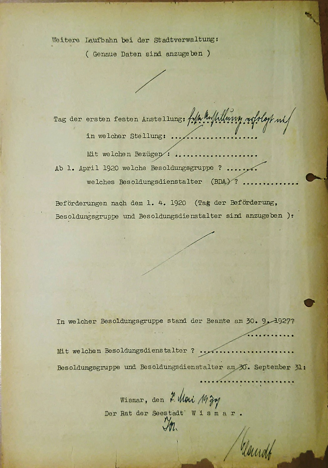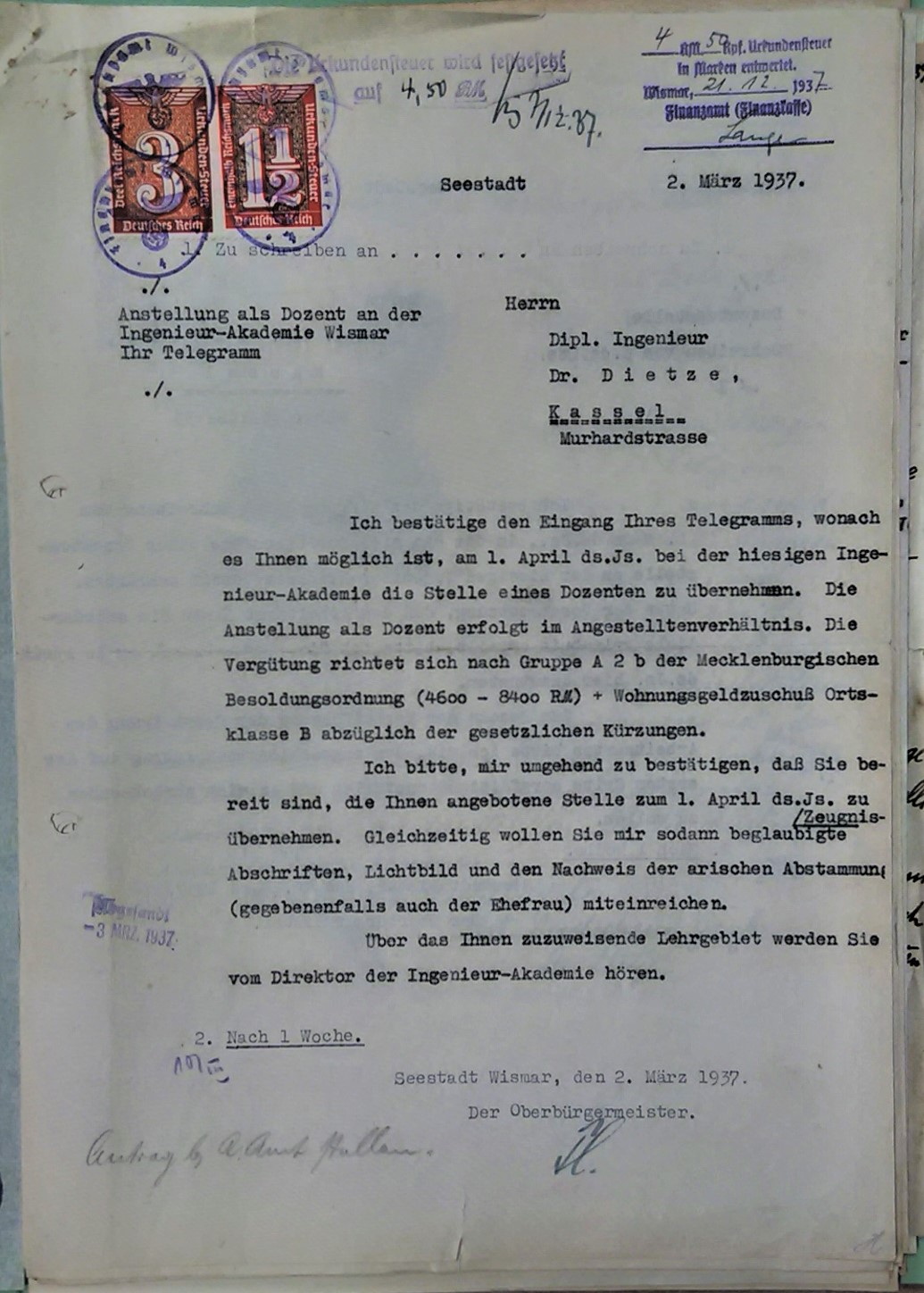 Folgetätigkeiten bis zur Bewerbung am 16.12.1936 in Wismar: