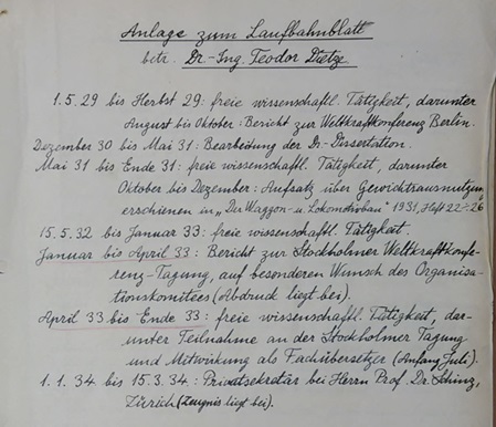 Dietze verwies zu diesem Zeitpunkt noch nicht auf seine Schweizer Staatsbürgerschaft. Aber er legte wert auf die Aussage seiner großväterlichen Abstammung zu rein arischen Großkaufmanns- bzw. Fabrikantenfamilie. (siehe Auszug)