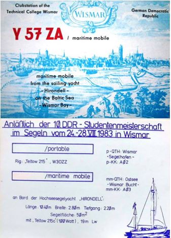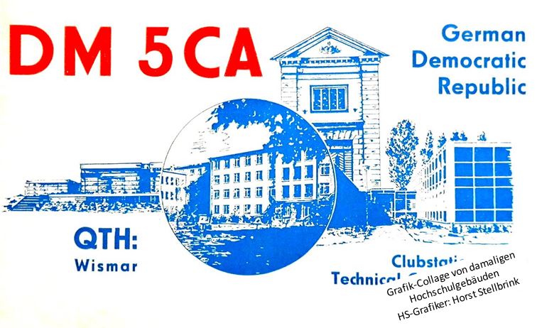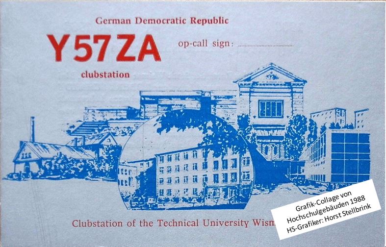 Mit Beginn meiner Arbeitsaufnahme an der Hochschule in Wismar erfolgte 1977 der Aufbau einer Klubstation an der damaligen Sektion Elektrotechnik/Elektronik mit dem Erstrufzeichen DM5CA. Daneben die QSL ab 1988. (seit 1980 neues Rufzeichen Y57ZA)