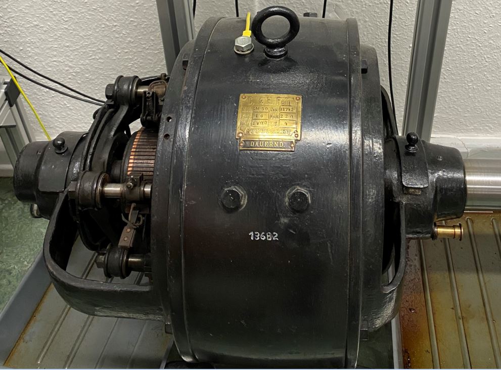Diese 4 PS-Gleichstrommaschine aus Akademiezeiten (ca. 1910) ist nach wie vor funktionsfähig und im Laboreinsatz.
