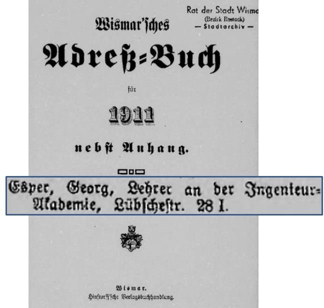 Als Wohnanschrift findet sich 1911 im Wismarer Adressbuch diese Adresse: Lübsche Str. 28/I