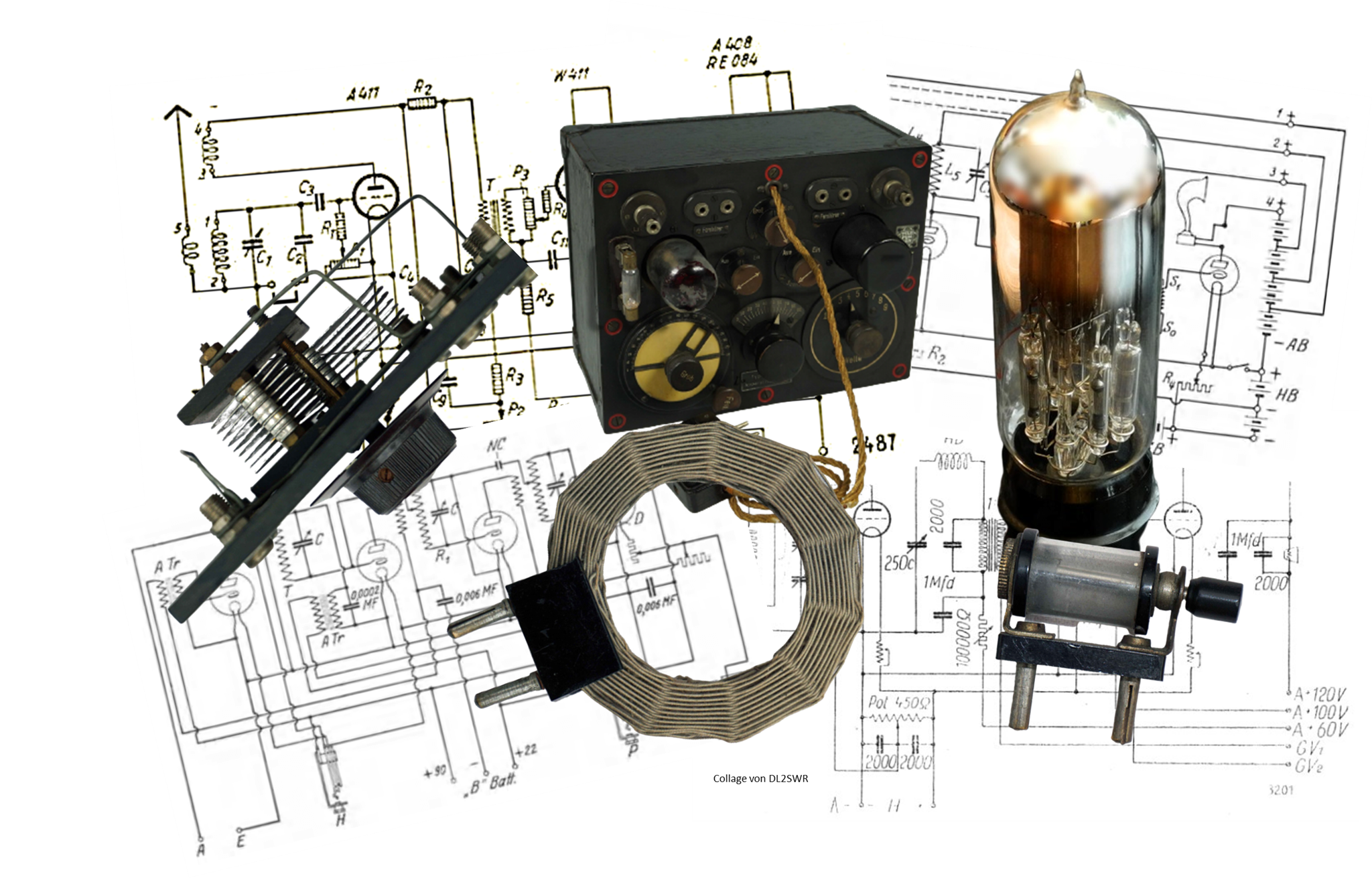 Aber auch kleinere Ableger mit “nur” 10 Watt waren zu haben. (Beide Bildquellen: Collagen von DL2SWR auf Basis “Telefunken-Stationen und Geräte”/ Funkentechnische Lehrgeräte von 1919 online: https://www.cdvandt.org/Tel-Buch-1919-Teil-3-2.pdf / Klick auf Foto)