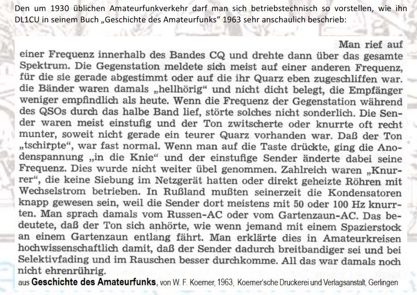 Betriebsart - nur in Morsetelegrafie. Aber wie fanden zwei "Gesprächspartner" zusammen? Verabreden auf einer bestimmten Frequenz? Fehlanzeige, das war viel zu ungenau. Aber es gab aber auch viele weitere Probleme zu lösen... Mehr dazu
