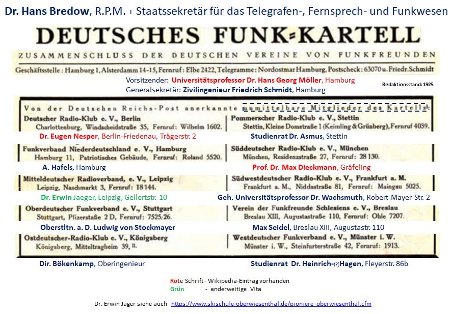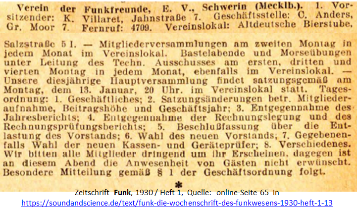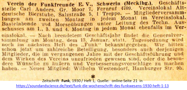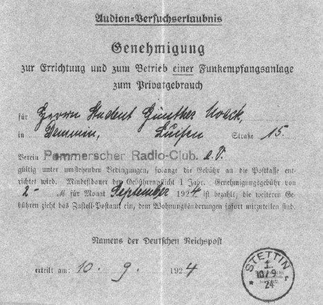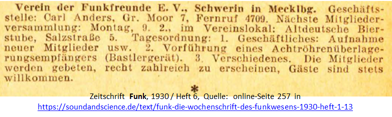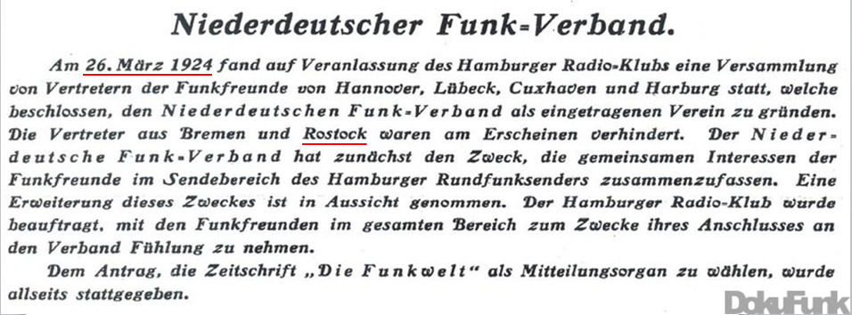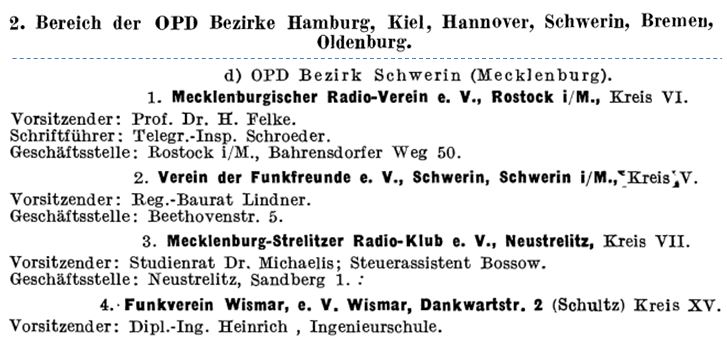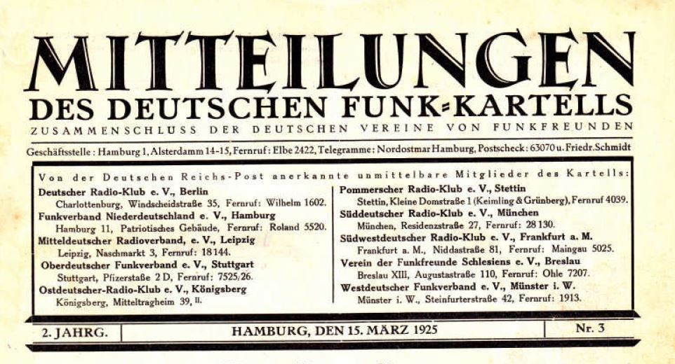 1924 gründeten damalige Funk- und Radiovereine als gemeinsames Sprachrohr das Deutsche Funk-Kartell. Es wurde durch die Deutsche Reichspost DRP mit der Ausbildung und Prüfung (Audion-Versuchserlaubnis) von potenziellen Radio-Hörern beauftragt und wirkte 18 Monate bis 1925 letztlich in 10 regionalen Verbänden und ca. 15.000 Mitgliedern. - Und Wismar war dabei. Mit dem Funkverein Wismar e.V. ...