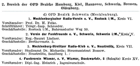 Im DFTV gehörte Schwerin dann zu einer Landesgruppe Mecklenburg-Schwerin. Die Landesgruppen-Leitung hatte der Dozent Dr.-Ing. Kurt Heinrich vom Funkverein Wismar e.V. inne.