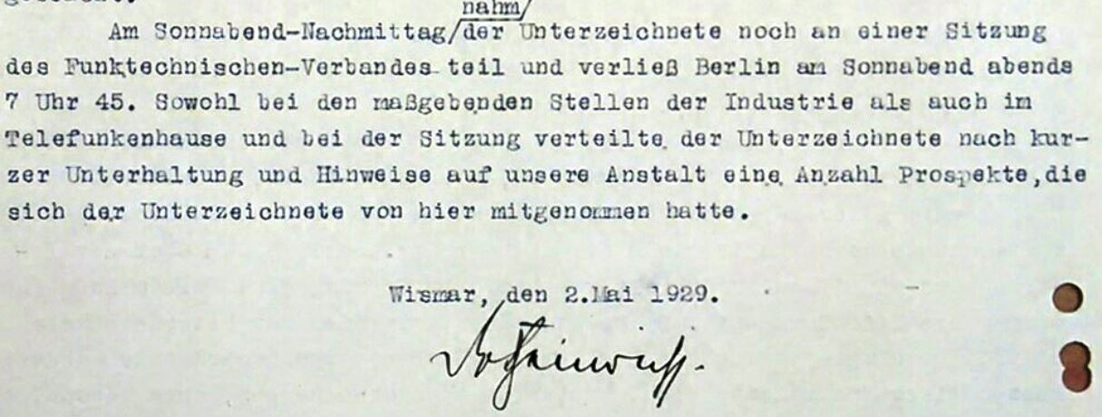 Das ist etwas kurios, da 12 Jahre später (1937) Hornbostel (wie auch die ganze Strelitzer Fachrichtung Elektrotechnik) zur Akademie Wismar zu wechseln hatte... Wilhelm Hornbostel wird sich in Wismar dann zwar nicht mehr dem Amateurfunk widmen, aber nach Ende des II. WK beim Neuanfang einer nun staatlichen Bau- und Ingenieurschule Wismar tauchten aus dem alten Kaderbestand nur zwei Namen auf – Anton Willert und eben Wilhelm Hornbostel.