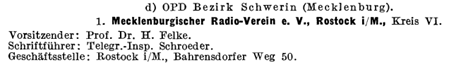 In der Vereinsaufstellung zum Deutschen Funk-Kartell wurde der Name als Mecklenburgischer Radio-Verein e.V. in Rostock in Mecklenburg manifestiert.