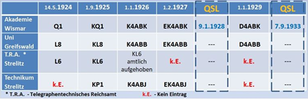 Überblick und Rufzeichen der wenigen Vereins-Sender der frühen Funkvereine im Bereich des heutigen MV's