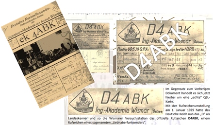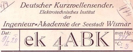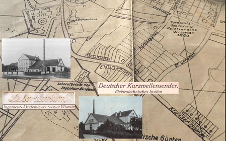 Kurt Heinrich gründete im Laboratorium der Akademie am "Klusser Damm" (erst später dem "Am Baumweg" zugeordnet) das erste An-Institut - sein Elektrotechnisches Institut. Die Ausrüstung brachte er aus seinem bisherigen privaten Labor in Sachsen ein. Anfangs nur mit Empfangsapparaturen; ab Mai 1924 auch eine Versuchs-Funksendestation. Mit einer Funk-Vereinsgründung am 10. Juni 1924 involviert Heinrich nun auch die Wismarer Bürger. (ausführlich und bebildert in den Wismarer Beiträgen, Hefte 24-26 und 29).
