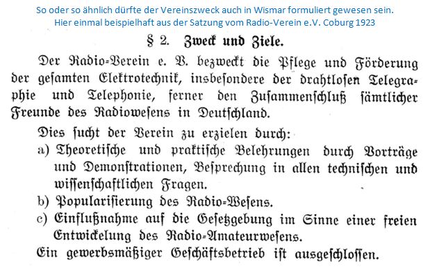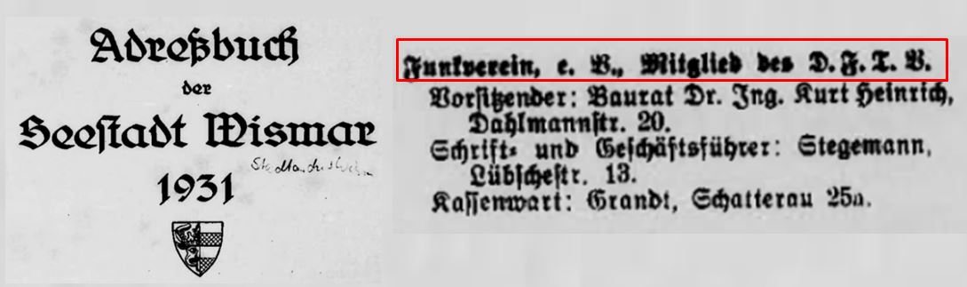 Die Deutsche Reichspost D.R.P. tat sich schwer, ihre Monopolstellung bei der Nachrichtenübermittlung aufzugeben. Selbst der Erwerb von Empfangsgenehmigungen war mit großen Hürden verbunden und nur über Vereinsmitgliedschaften zu erlangen. Und Sendegenehmigungen konnten, wenn überhaupt, nur an Fachleute, Institutionen oder Vereinen beantragen. Um die Funktechnik weiter zu popularisieren (in Wismar bot Dr.-Ing. Kurt Heinrich diese Themen auch in einem Abendkurs für Arbeiter an), gründete Heinrich am 10. Juni 1924 einen Funkverein in Wismar.