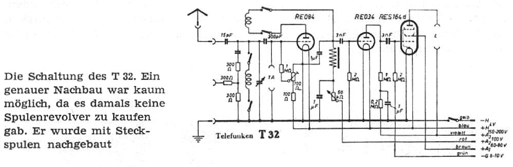 1930 brachte Fa. Telefunken einen speziellen Amateur(funk)Empfänger T 32 heraus. Ein Geradeausempfänger in Form eines 0-V-2. Die Neuheit: ein Spulenrevolver.