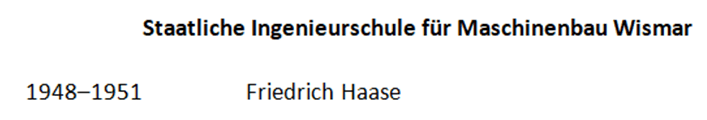 Friedrich Haase, Dipl.-Ing., Städtischer Baurat, Dozent, Wismar, Ingenieur-Akademie
