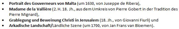 Aufstellung der gepfändeten Gemälde: