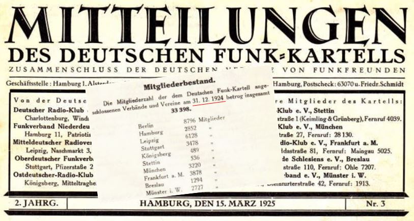 Zum DFTV gehörten Ende 1925 320 lokale Radiovereine mit rund 50.000 Mitgliedern. und zu den nur etwa 50 Sendeamateuren, die ihre Lizenz über den DFTV erhielten.