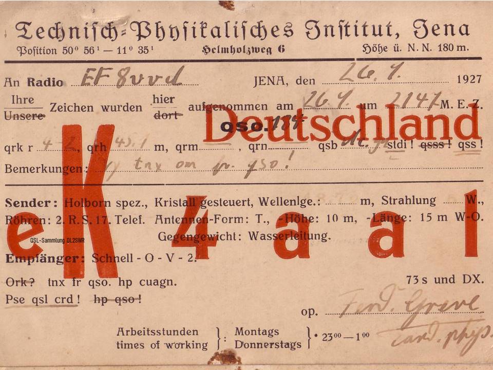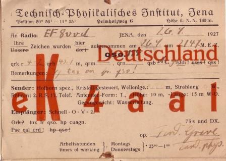 Das „Technisch-Physikalische Institut“ (Prof. Dr. Esau) am Helmholzweg 6 in Jena (eK4AAL) verwendete im September 1927 die 6cm kleinere RS 17; diese dafür 2-mal. (mehr dazu)