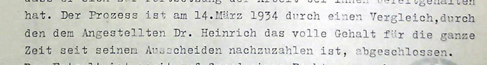 Obwohl Heinrich letztlich durch Vergleich am 14. März 1934 gewann und ihm für den gesamten Zeitraum seit der Entlassung das volle Gehalt nachzuzahlen war, war er letztlich ruiniert.