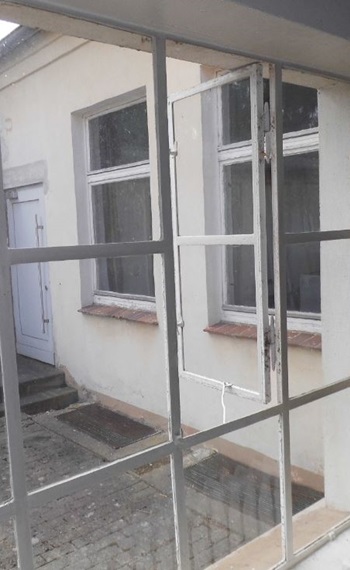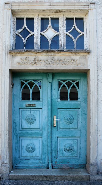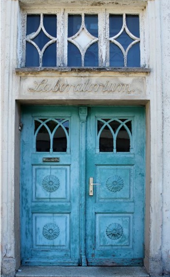 Der Haupteingang zum "Laboratorium" ist vom Baumweg nicht einsehbar und liegt im Innenhof, dem damals geplanten neuen Campus in Richtung Schweriner Starße zugewandt. Der eigentliche ET-Laborzugang erfolgte durch ein Gebäude mit Hör- und Zeichensaal für je 30 Plätze, dem verbindenden - später so genannten - Mittelbau des Laboratoriums.