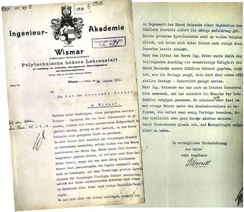 (Quelle: M. Schubert, Aus der Geschichte der Ingenieurausbildung in Wismar, Fachzeitschrift Nachrichtentechnik Elektrotechnik, VEB Verlag Technik Berlin, Heft 4/1988, Seite 123 ff )