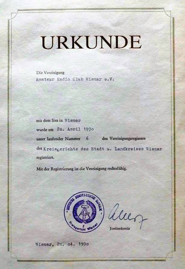 - 4. April 1990 / Wismar: Amateur Radio Club Wismar e.V. gegründet // mehr dazu