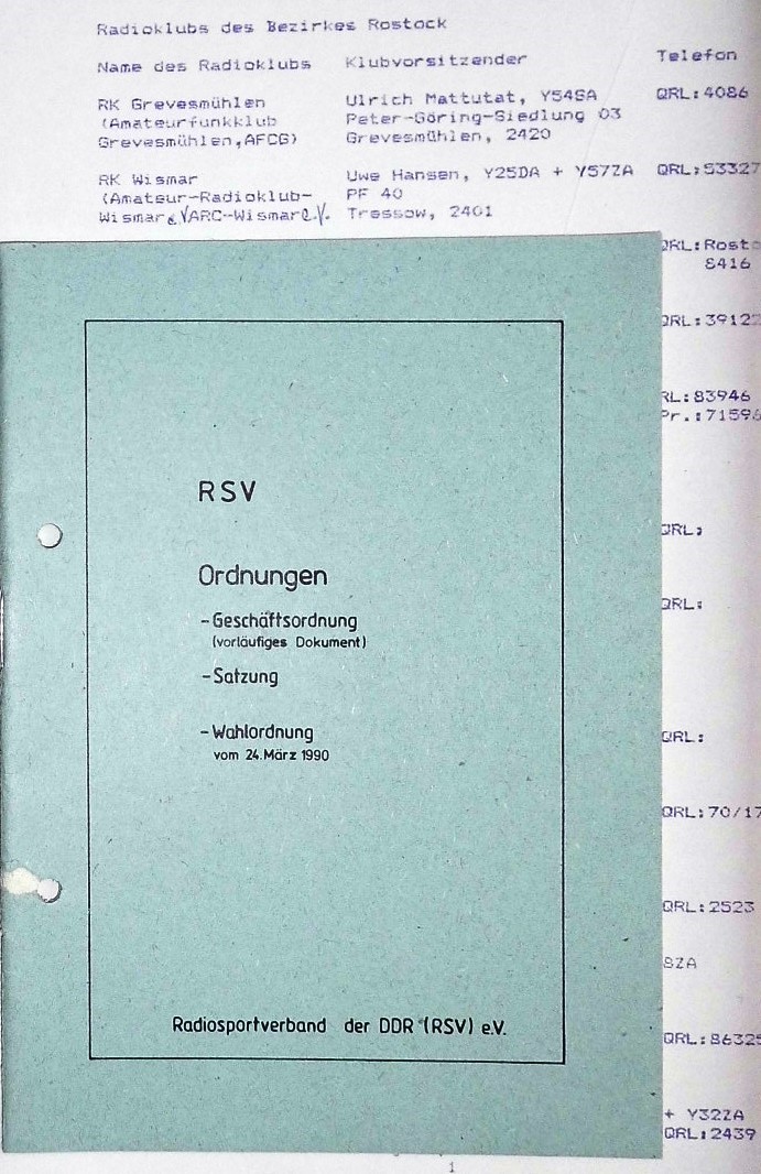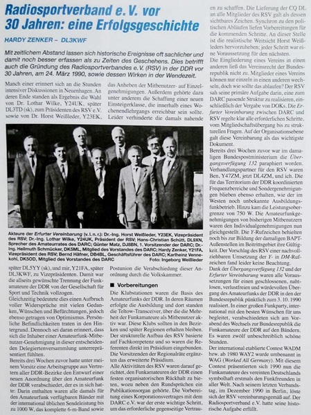 - 29. September 1990: Erfurter Vereinbarung über die Zusammenführung des Radiosportverbandes (RSV) e.V. und des Deutschen Amateur - Radio - Club (DARC) e.V. (als Beitrag im RSV-Rundspruch vom 7.10.1990)