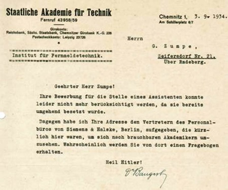 In einem Brief aus Chemnitz (Dr.-Ing. Kurt Heinrich verbrachte meist die Semesterferien in seiner alten Heimat und im Erzgebirge) im September 1926 an den Akademiedirektor Michenfelder kündigt Heinrich seine Vorstellungen zu einem dienstlichen Abstecher nach Berlin an.
