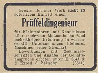 [1] Bericht/Brief von Dr.-Ing. Kurt Heinrich an Akademie-Direktor Michenfelder zu Exkursion bei Siemens & Halske, Telefunken und AEG in Berlin vom 30.12.1927.