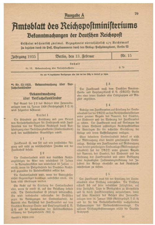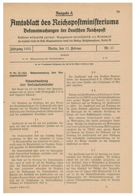 Der Reichspostminister beauftragte am 13. Januar 1934 alle Oberpostdirektionen (OPD), die Genehmigungsinhaber von Versuchsanlagen über diese Unzulässigkeit zu informieren.