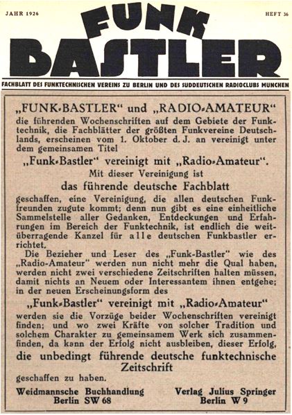 HINWEIS: Wer oder was ist der "Funkbastler" - ab Oktober 1926 neu!