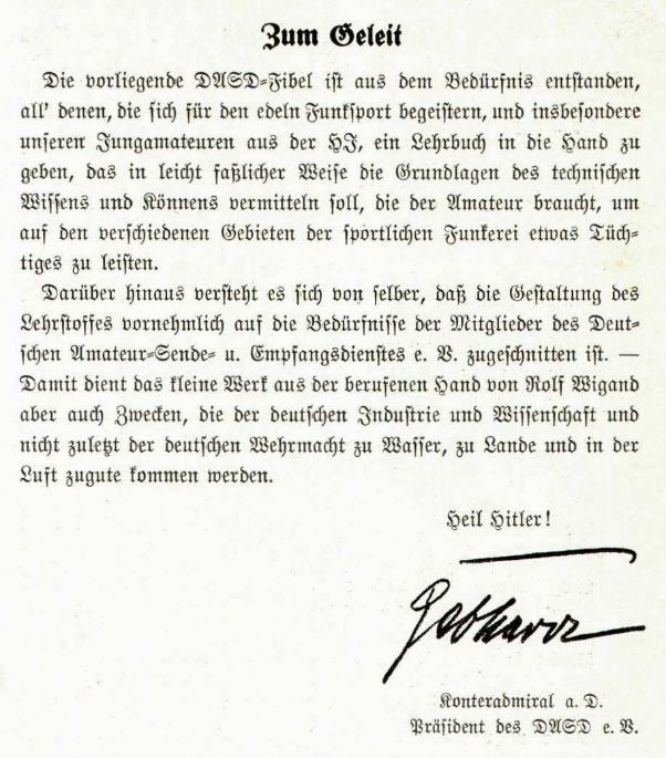 (Vorwort im Buch: DASD-Kurzwellentechnik 1931) // 1936 klingt das "Zum Geleit" so...