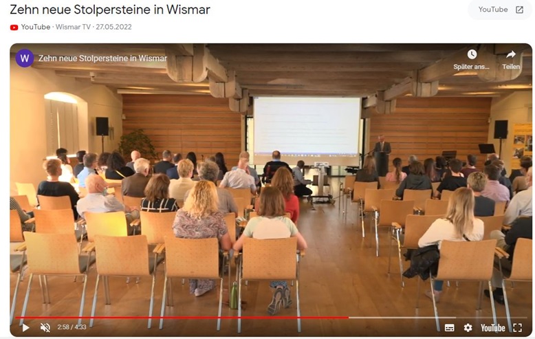 Alle aktuell 48 Kurzbiografien zu den Wismarer Stolpersteinen finden sich auf der Wikipedia-Seite als erste Fußnote nun in einem Dokument (PDF) als Angebot. Neu aufgenommen wurde auch der Stolperstein Ilse Heinrich von Hornstorf, am östlichen Stadtrand von Wismar.