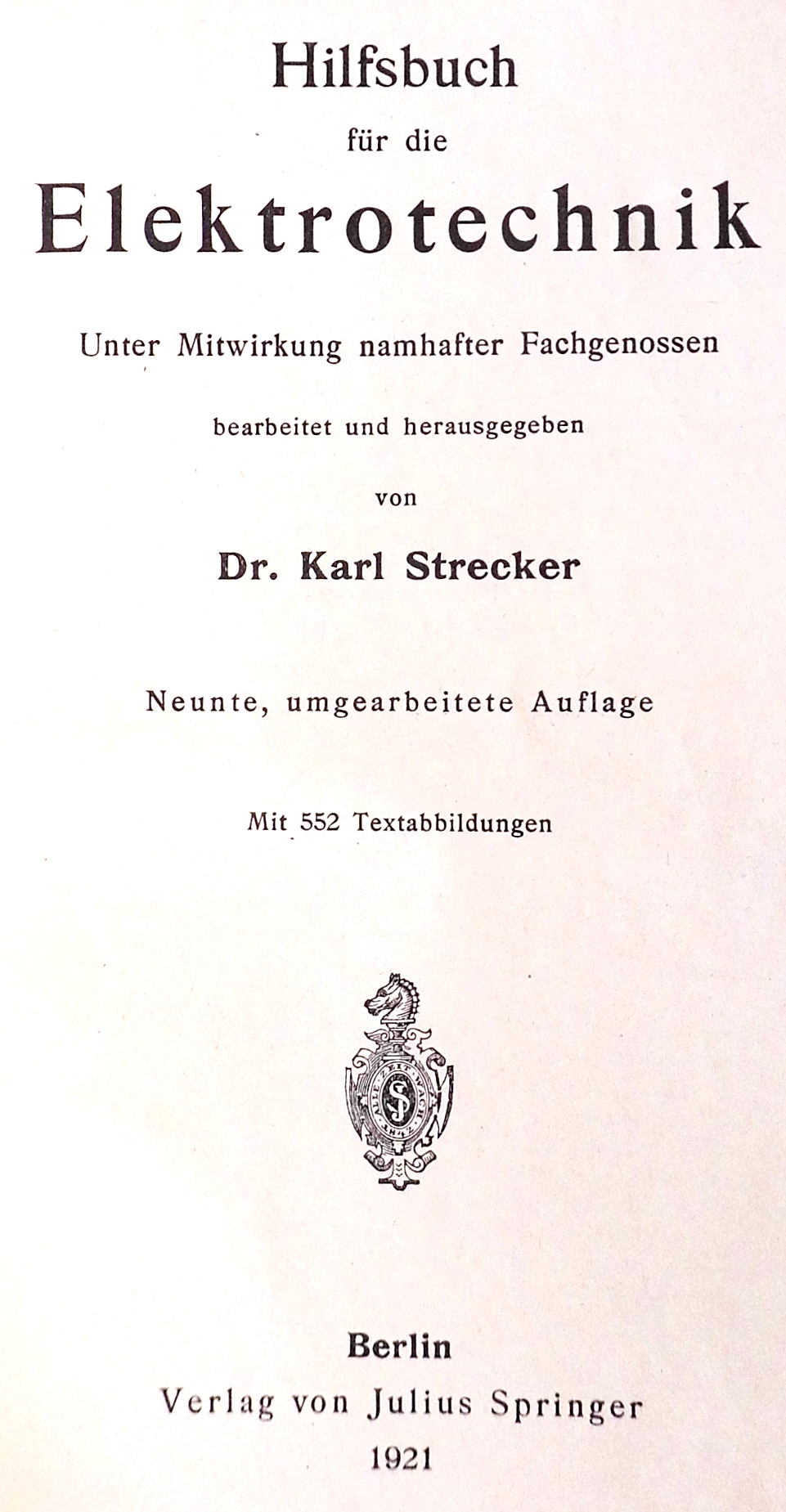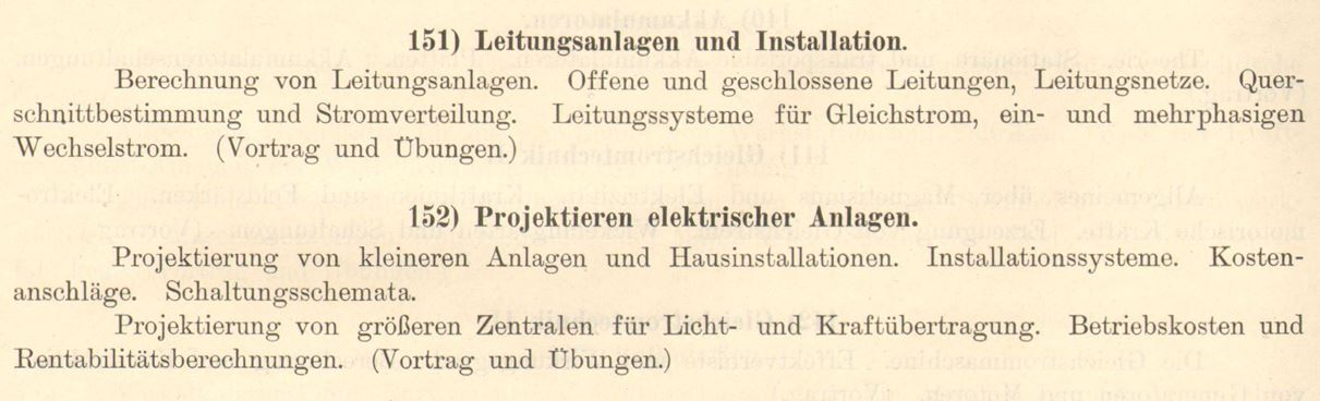 Ein zu der Zeit übliches Lehr-/Fachbuch war das "Hilfsbuch für die Elektrotechnik" von Dr. Karl Strecker (Herausgeber) ab 1912, bei fast jährlicher Neuauflage. Vermutlich wurde dieses Buch eher auch von den Dozenten als Studenten genutzt.