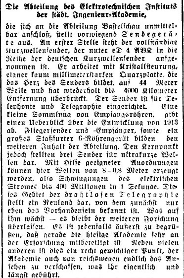 Und schon hatte sich der Laborleiter sich zu kümmern. In den zwanziger Jahren oft allein in persona, später unterstützten Techniker und auch studentische Hilfskräfte. (mehr dazu)