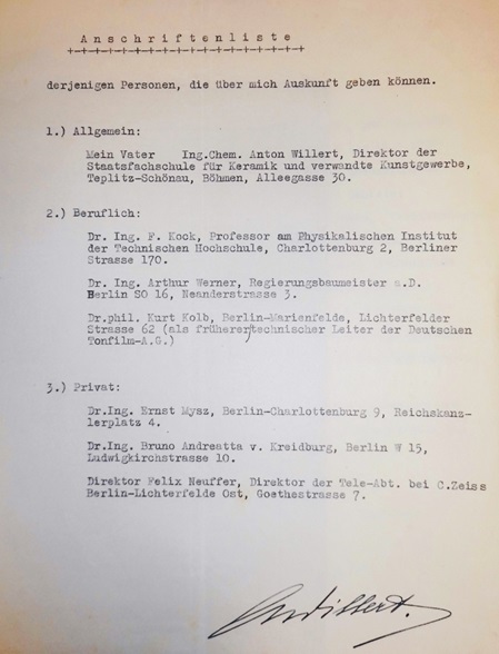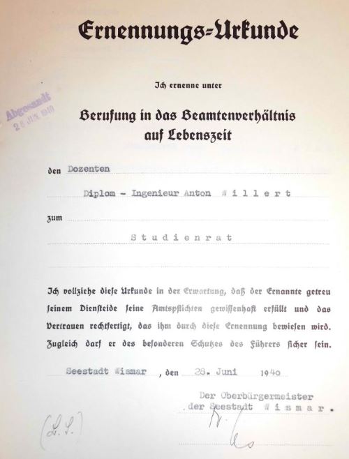 Am 28. Juni 1940 erfolgte Willerts Ernennung zum Studienrat unter Berufung in das Beamtenverhältnis auf Lebenszeit und begab sich damit "...unter den besonderen Schutz des Führers."