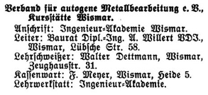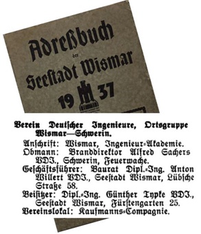 VDI-Ortsgruppe Wismar-Schwerin / Geschäftsführer DI Anton Willert (1937)